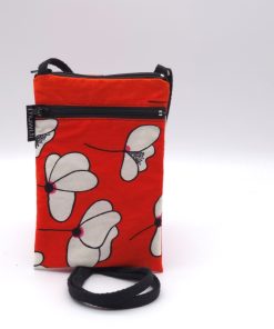 Koko n. 13 x 19 cm. Sivussa reilun kokoinen tasku, säädettävä kaula/olkahihna n. 75-150cm (huom! uusi pidempi hihna). Puuvillavuori. Tampellaa.