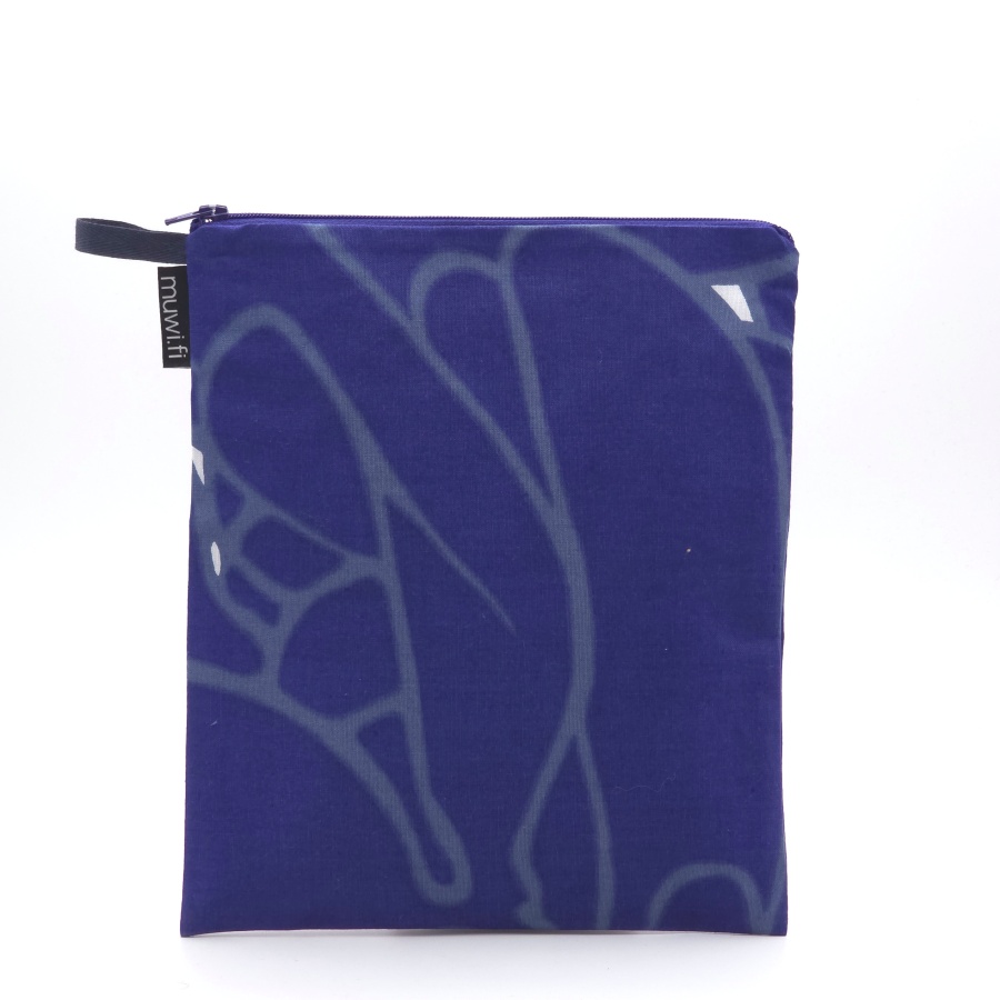 Päällinen puuvillaa, vuori pinnoitettua polyesteria. Koko n.21×25 cm. Kosteudenpitävä pussukka, ripustuslenkillä, soveltuu esim. uikkareiden kuljettamiseen.