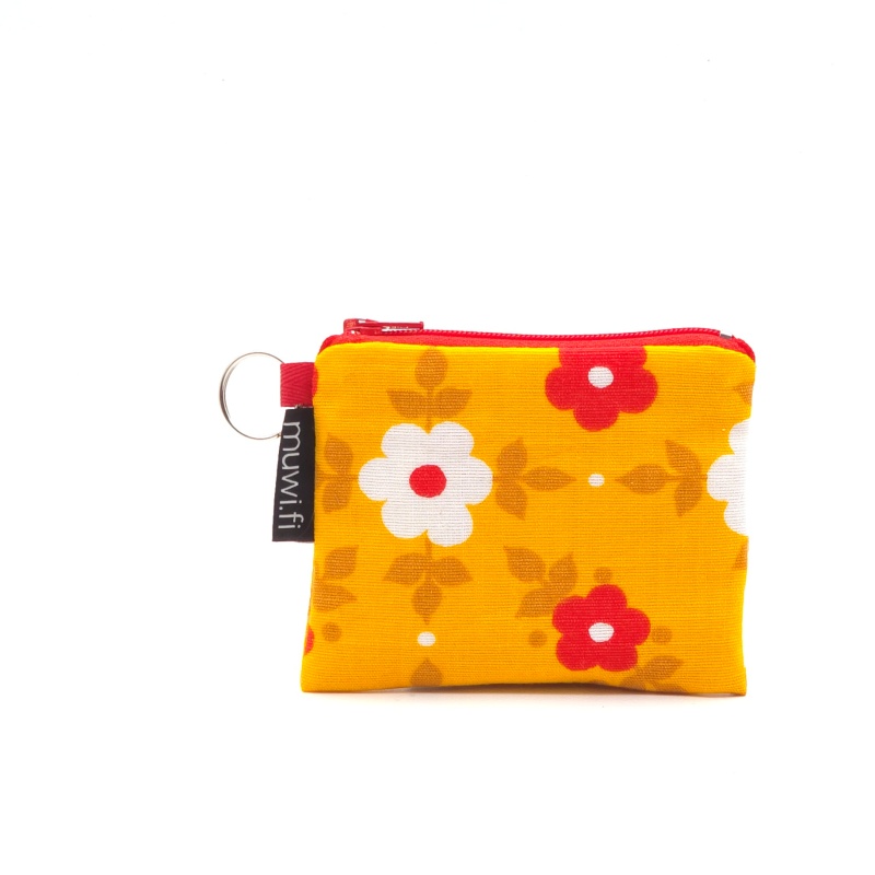 Koko n.11×9 cm. Puuvillavuorattu pikkupussukka, kätevä kukkarona, maksukortit mahtuvat myös pystyssä.