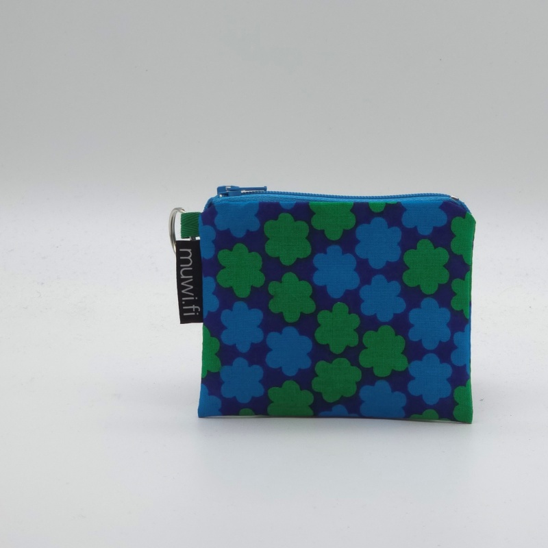 Koko n.11×9 cm. Puuvillavuorattu pikkupussukka, kätevä kukkarona, maksukortit mahtuvat myös pystyssä.