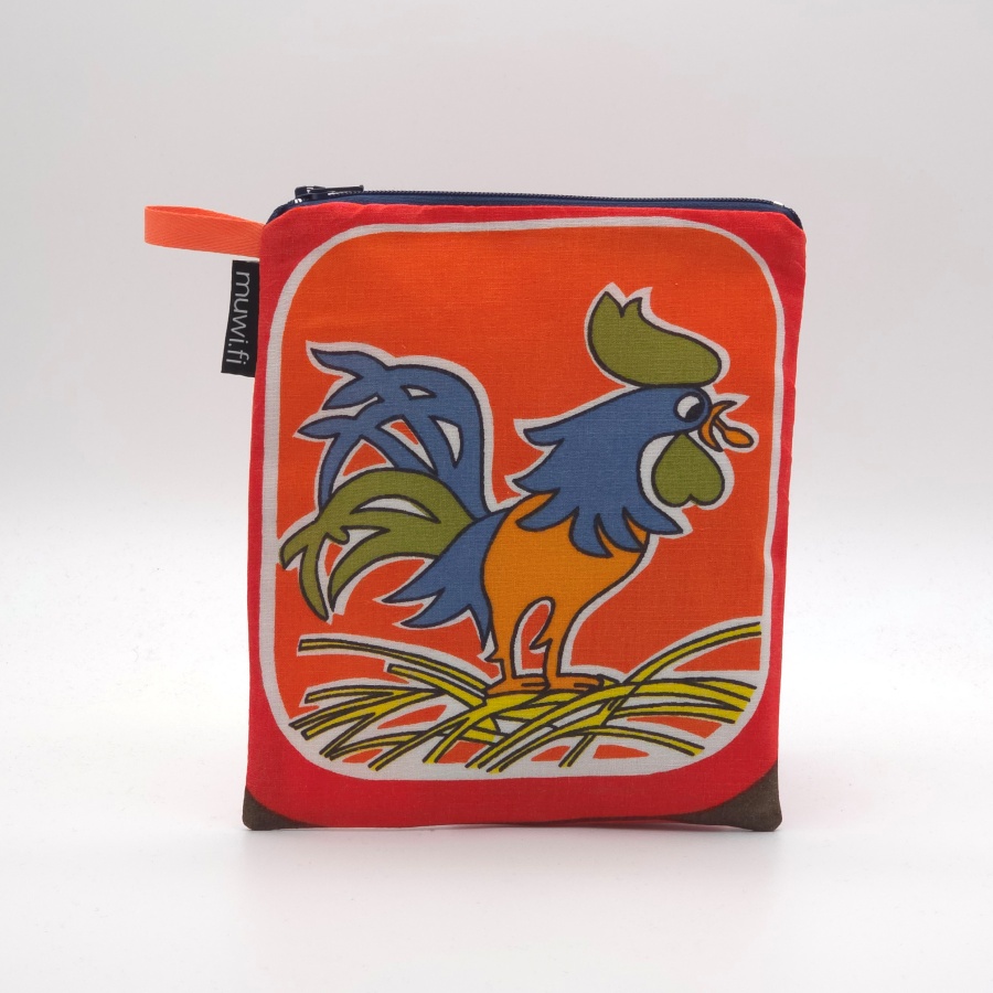 Päällinen puuvillaa, vuori pinnoitettua polyesteria. Koko n.16×20 cm. Kosteudenpitävä pussukka, ripustuslenkillä, soveltuu esim. uikkareiden kuljettamiseen.